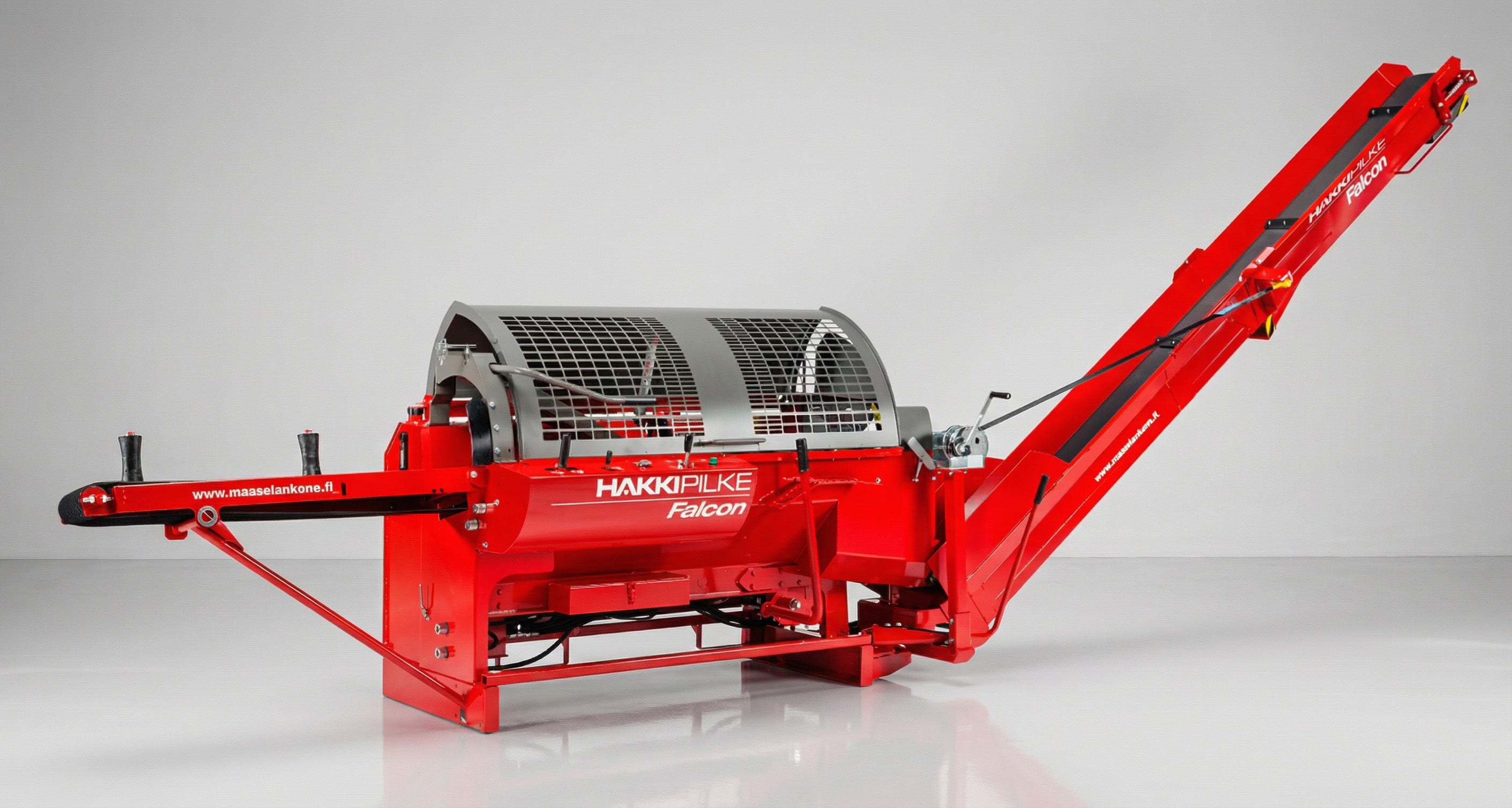 Falcon 37 är byggd för dig som vill arbeta snabbt och smidigt. Den är standardutrustad med renskanal och har ett öppet arbetsområde som ger full överblick, hög säkerhet och enkel service. Med Easy-funktionen får du hydraulisk styrning av kap- och klyvfunktion samt steglös reglering av inmatningsbandet.