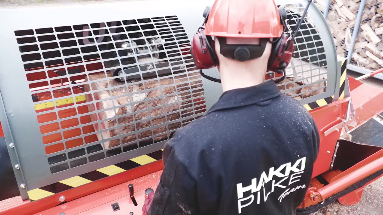 43 PRO har en ännu kraftigare ram men ändå kompakta dimensioner och låg vikt. Maskinens produktivitet har ytterligare förbättrats genom en optimerad klyvning utan fördröjning och nya egenskaper som underlättar materialflödet - en hydraulisk stockhållare, en vedlängdsmätare som flyttar undan hydrauliskt och styrplattor för vedklabbar som faller ned.